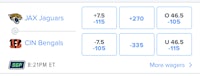 While this isn’t a game between the two most competitive teams in the league, it is certainly interesting given what’s at stake. Trevor Lawrence has started his pro football career 0-3, while previously going 86-4 throughout his high-school and college career. He is not accustomed to losing, but when you play on a team like the Jaguars, you better get used to it. He will have his hands full trying to get his first NFL win tonight against his college foe: Joe Burrow. Burrow led LSU to a huge victory over Lawrence who was with Clemson in the Championship game 2 years ago. Unlike the Jaguars, Burrow and the Bengals have looked great this year, and it seems Ja’Marr Chase and Joe Burrow haven’t lost a step from their LSU connection. The Bengals defense is solid, and I think they are on their way to being legit contenders in a few years. However, while the Bengals have looked good, they definitely haven’t proven themselves just yet, and the Jaguars have some play makers like DJ Chark and James Robinson who could be a problem for the Bengals tonight. I like Lawrence having a decent game and the Jags keeping this one close. However, we are not watching top of the line football tonight. I expect a lot of errors on both sides and not a lot of scoring. Take the Jaguars +7.5, under 46.5 total points, James Robinson under 53.5 rushing yards, and Trevor Lawrence under 250.5 passing yards.